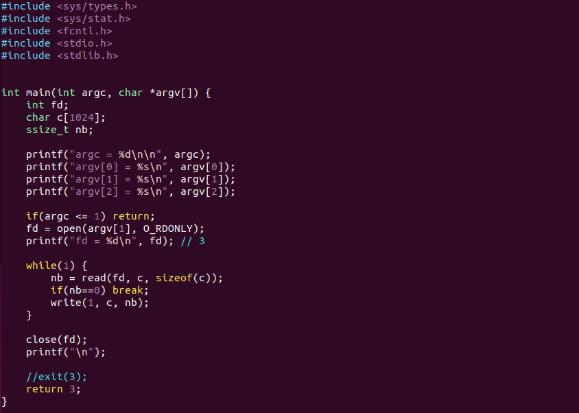 ** 아래는 my_cat.c 이다. gcc my_cat.c -o my_cat 으로 compile 해 실행 binary 이름을 my_cat 으로 해주었다.