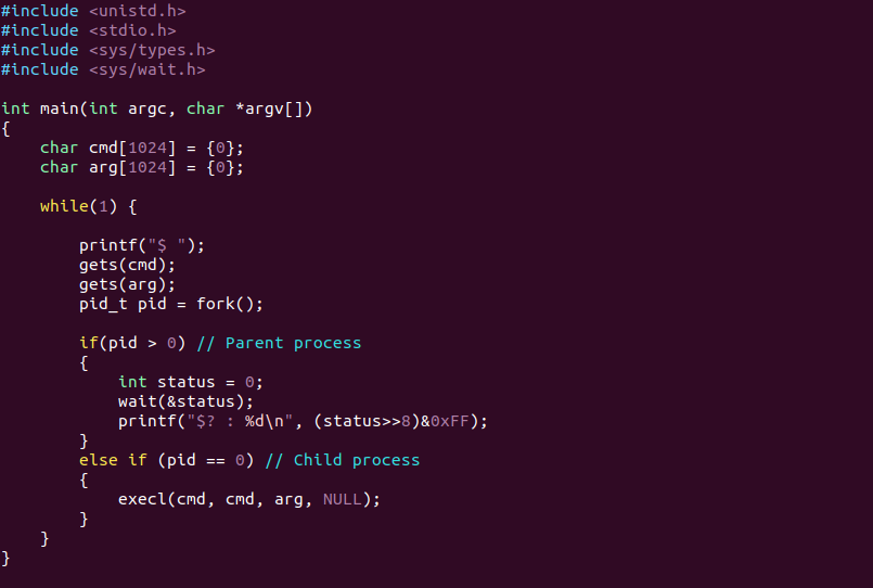 - 정상종료일 경우: 하위 8bits 는 0, 상위 8 bits 는 exit status(자식 프로세스가 exit 명령으로 전달한 값)