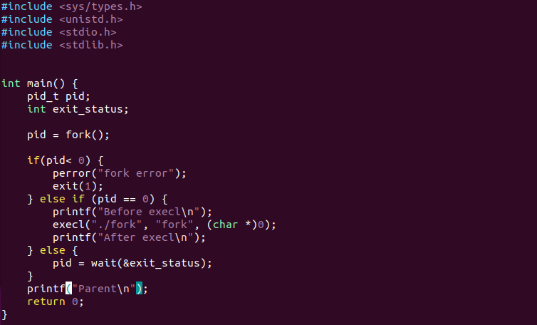execl.c 에서, pid_t pid = fork(); 바로 윗 줄에