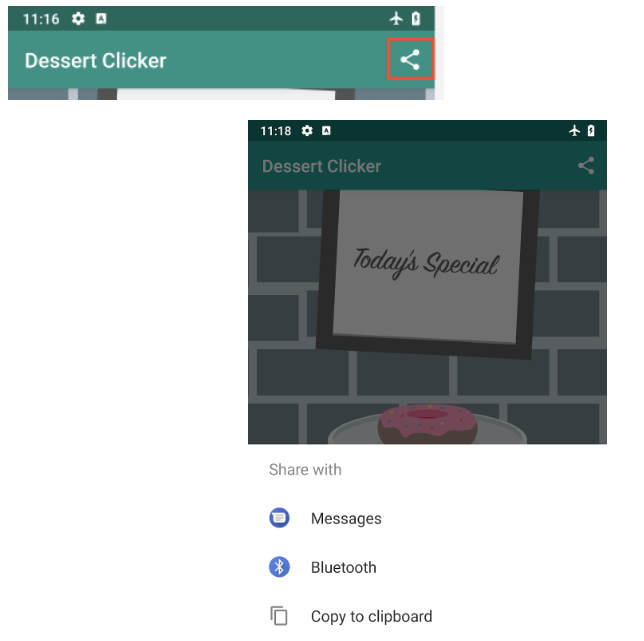 구체적으로 예시를 들자면, 어플의 "공유" 버튼을 눌러보자.
