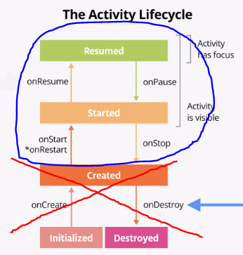 App 이 완전히 화면에 표시되고, 사용자 포커스를 보유하는 수명 주기 부분을 " 대화형 " 수명 주기라고 한다.