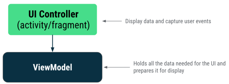 예를 들어, Unscramble App에서, 글자가 뒤섞인 단어, 점수, 단어 수는 Fragment (UI Controller) 에 표시된다.