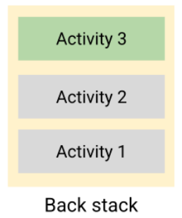 사용자가 여러 번 뒤로 이동하고 싶어하는 경우, Android는 맨 마지막 stack 에 가까워질 때 까지 계속 상단에 쌓여있던 활동을 순서대로 없앤다. back stack 에 더 이상 활동이 남아 있지 않으면, 사용자는 기기의 launcher 화면이나 이 활동을 실행한 앱으로 돌아가게 된다.