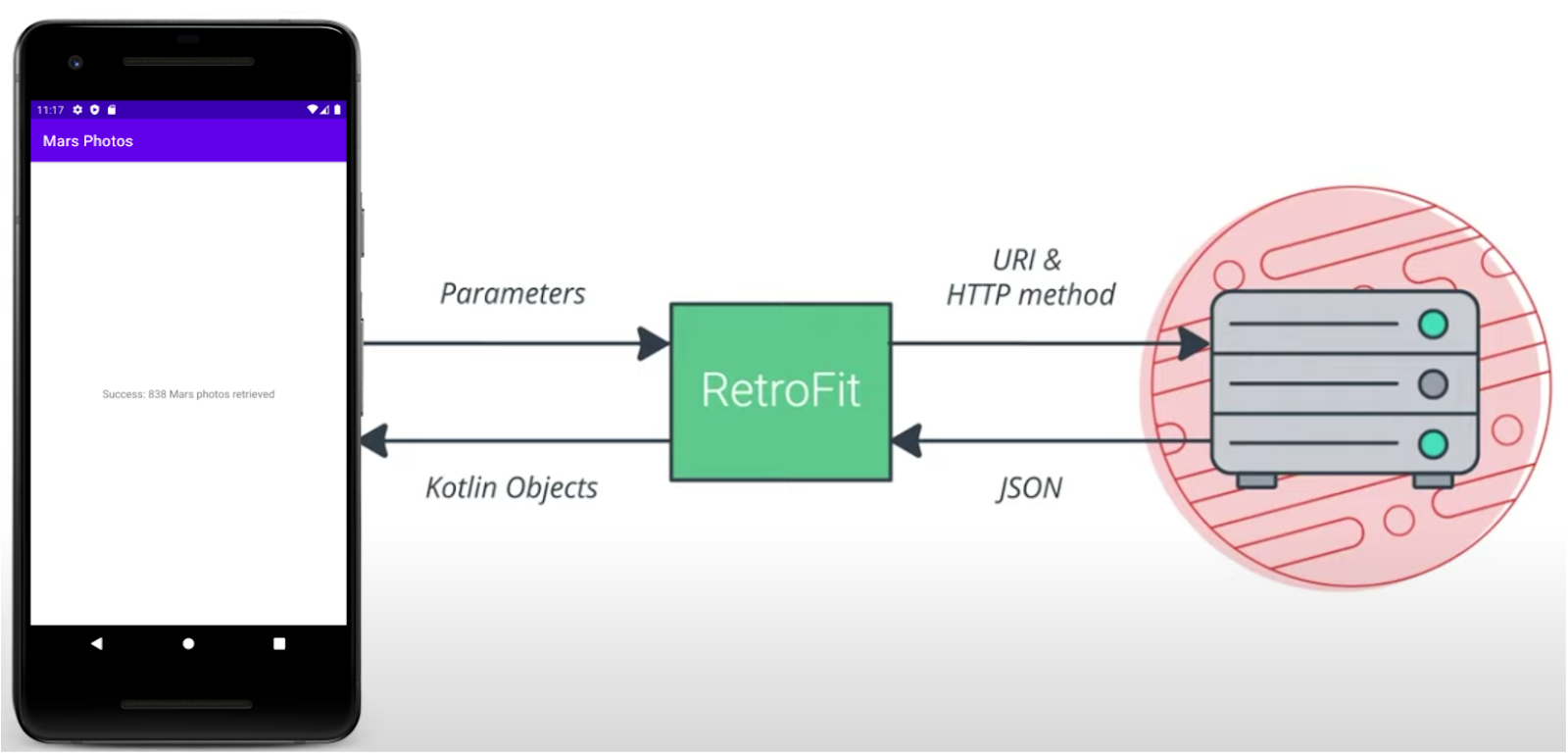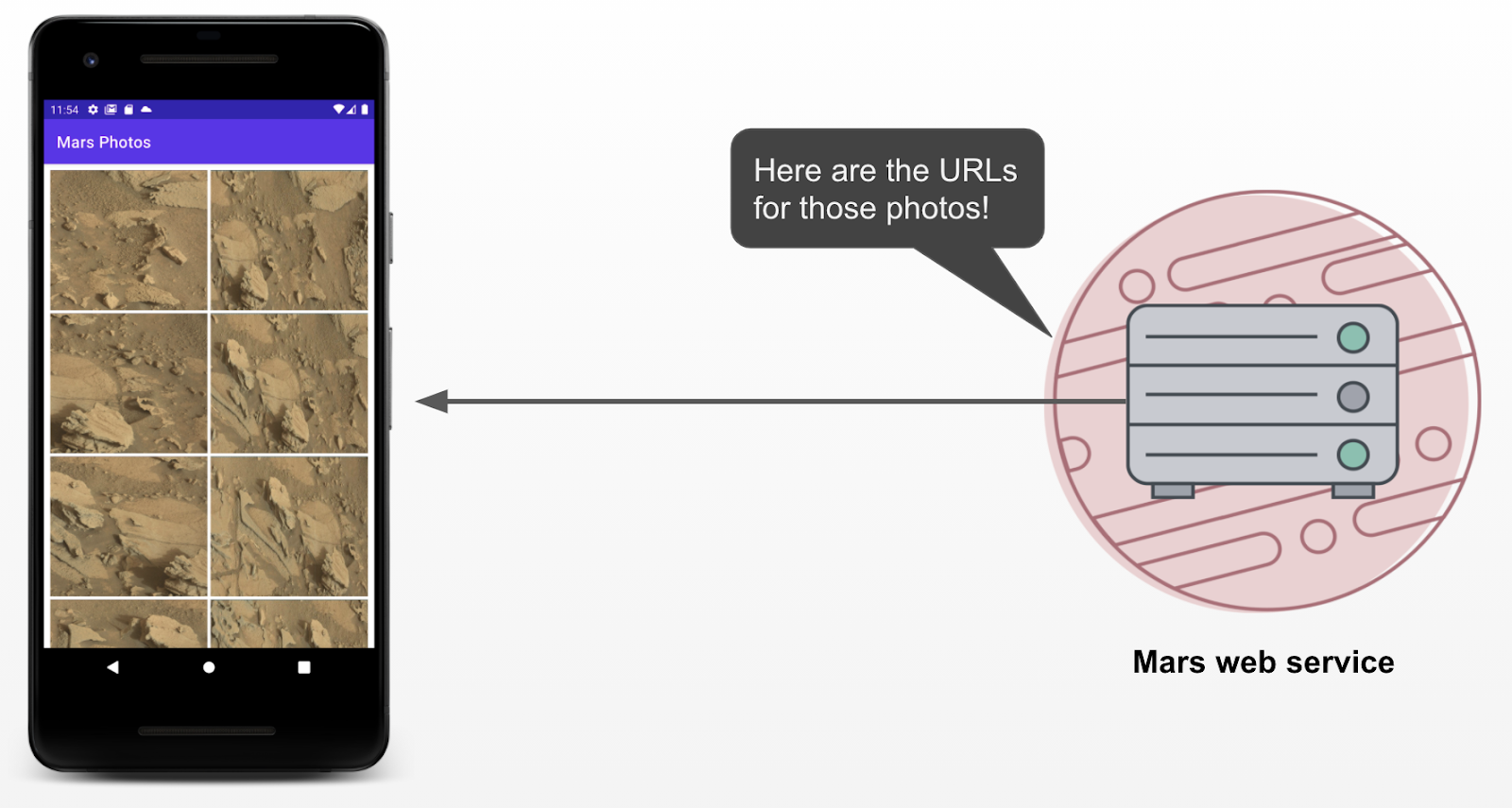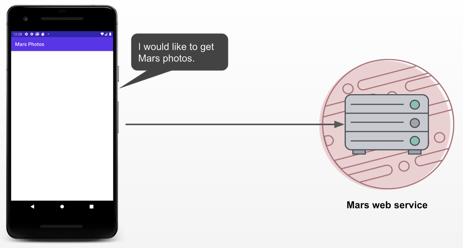 화성 사진 데이터는 웹 서버에 저장된다. 이 데이터를 App으로 가져오려면, 연결을 설정하고 인터넷을 통해 서버와 통신해야한다.