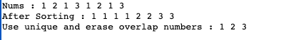 cout << "Use unique and erase overlap numbers : ";